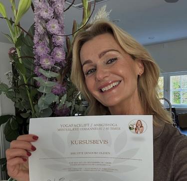 Birgitte fra Body & Mind - min første elev - blev certificeret og omsatte sin nye viden med det samme. Hun har holdt sin første ansigtsyoga workshop med stor succes — og kalenderen er nu fyldt med nye datoer